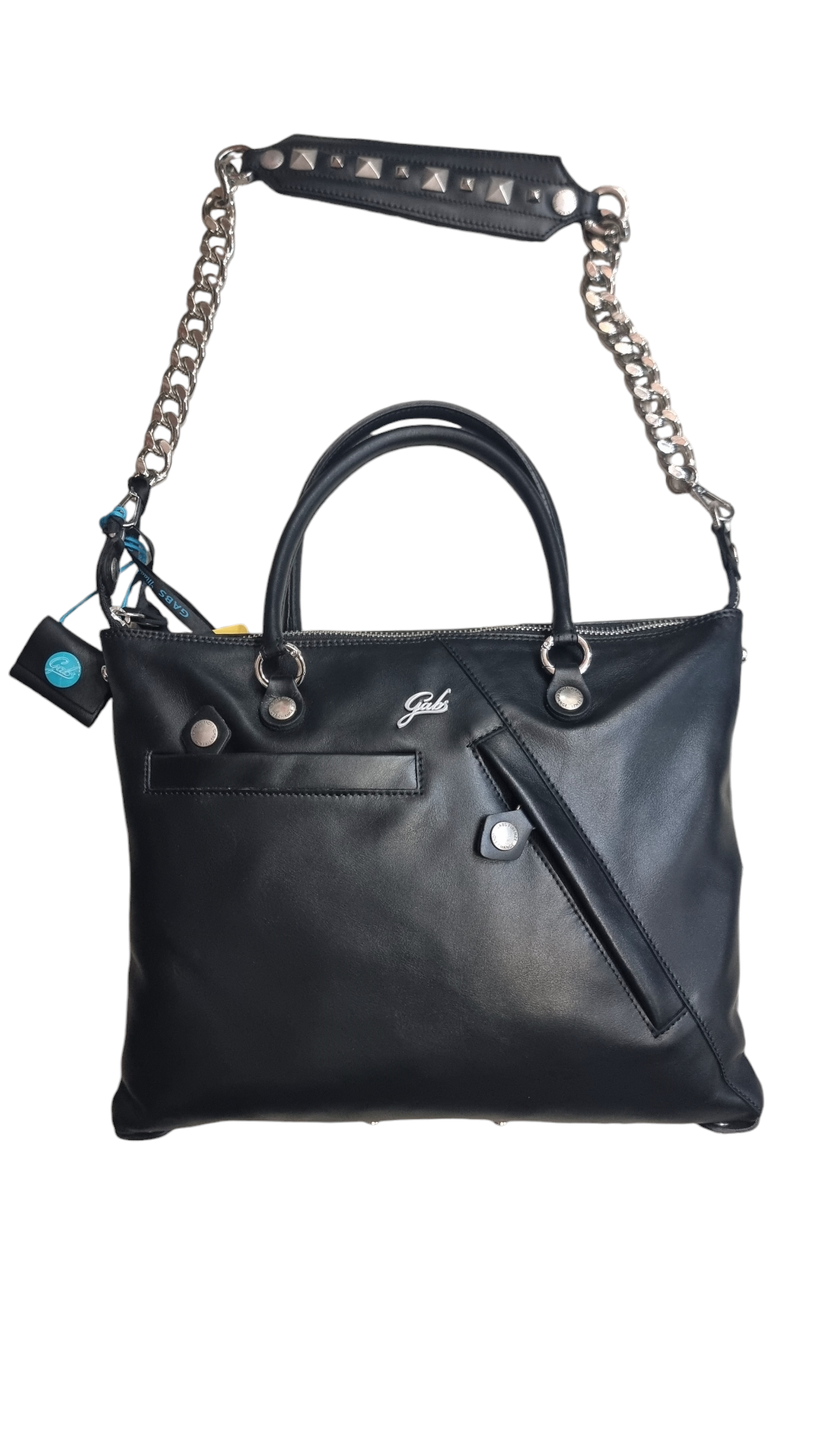 La linea Cleveland ha carattere rock si distingue per i dettagli iconici del classico chiodo. Realizzata in pregiata pelle semi-lucida Abrazo, è impreziosita da eleganti borchie a piramide