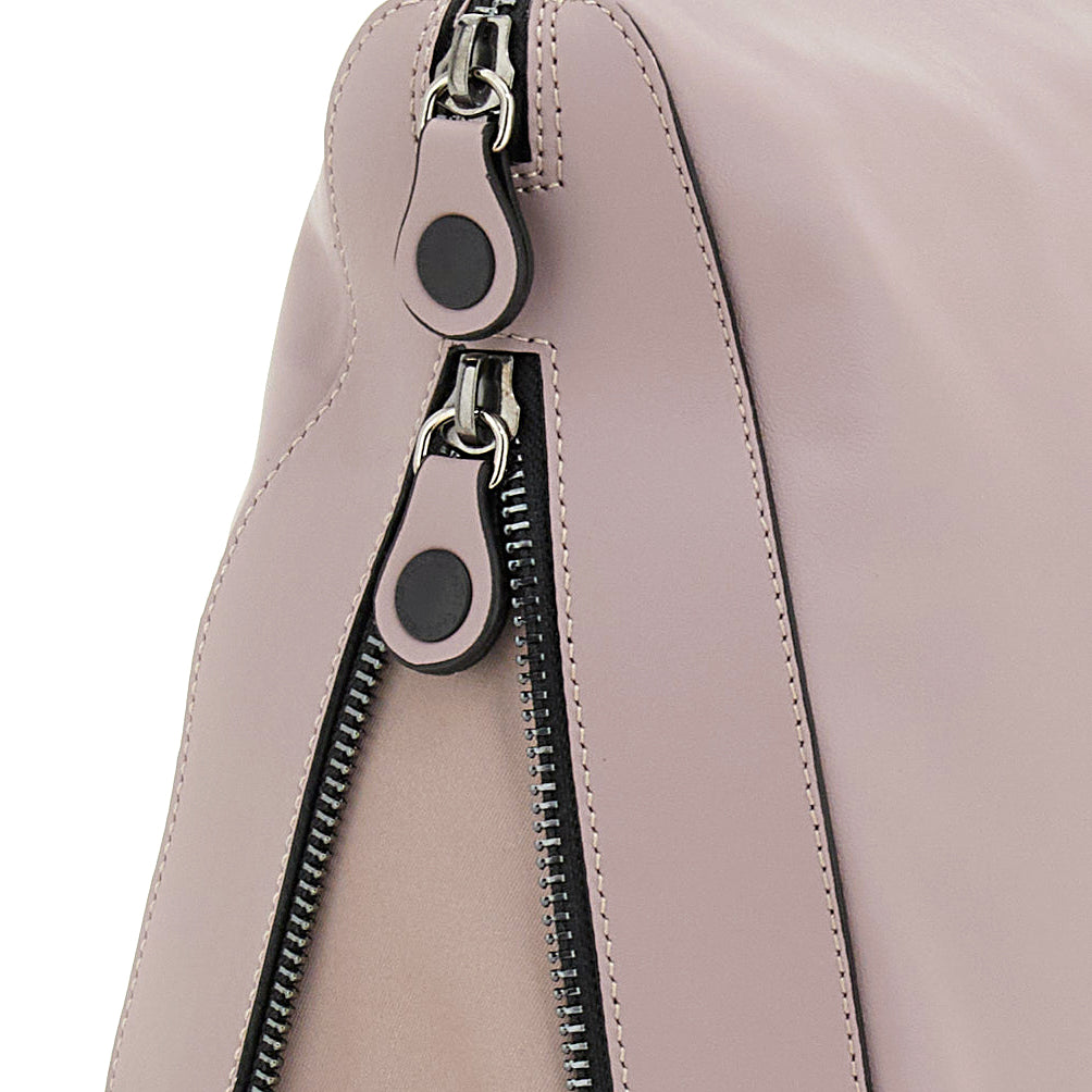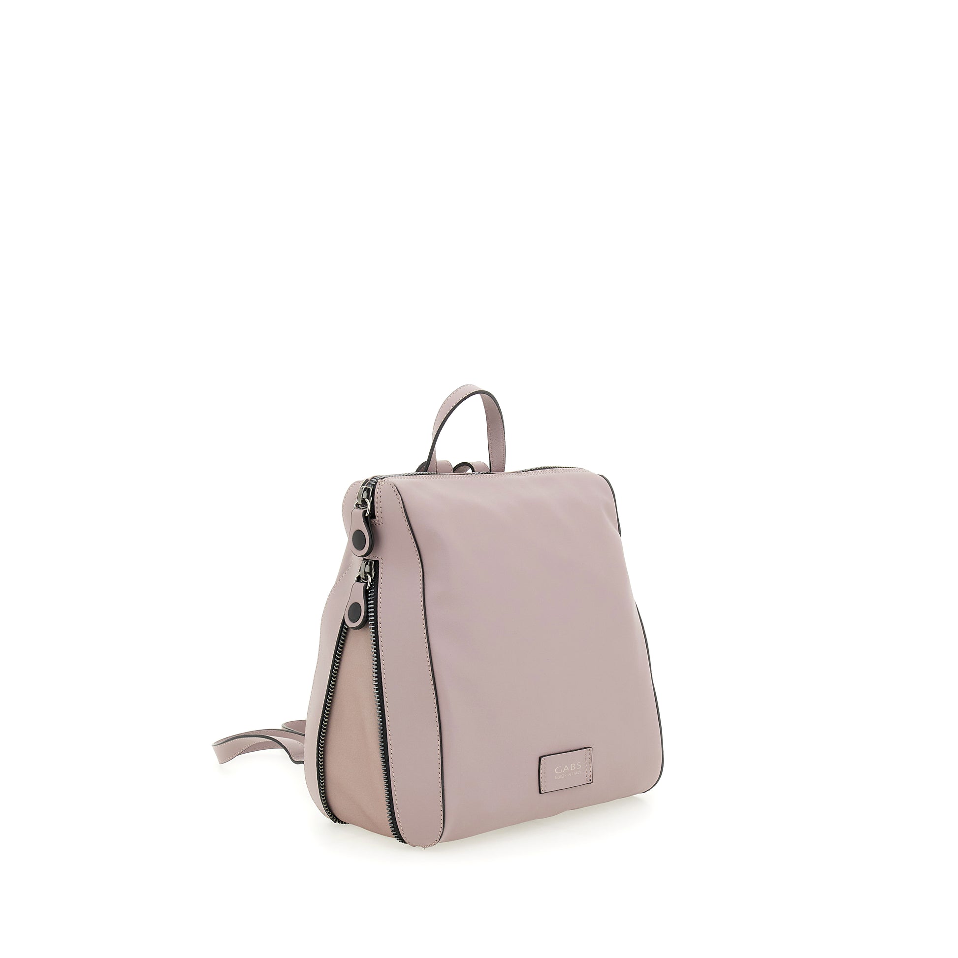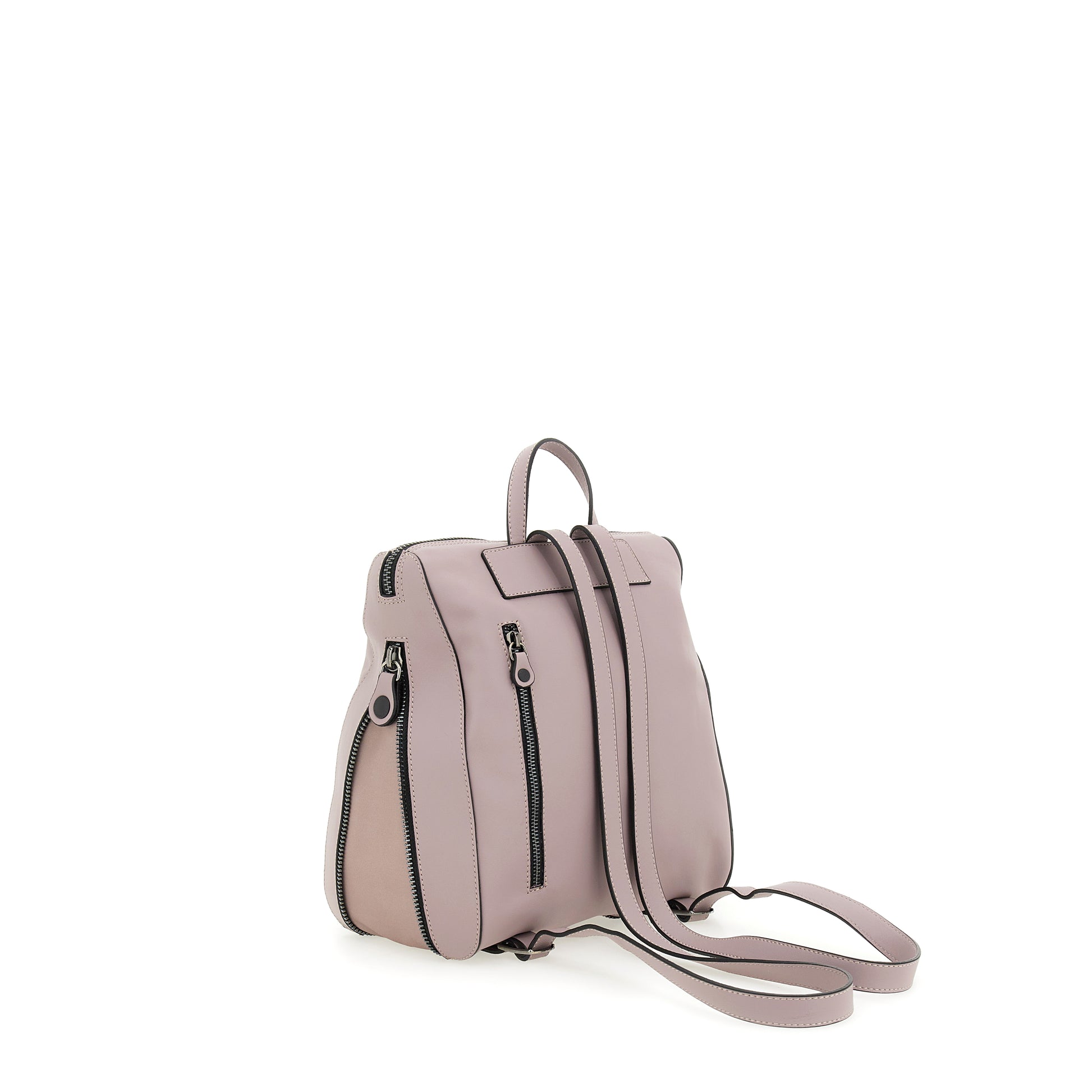 Zaino realizzato interamente in morbida pelle opaca con estensione in nylon resistente. Chiusura principale con zip. Interno foderati con 2 taschine aperte e 1 chiusa con la zip. Bretelline in pelle, in tono e regolabili. Esternamente è dotato della tasca nascosta nella parte posteriore con zip.