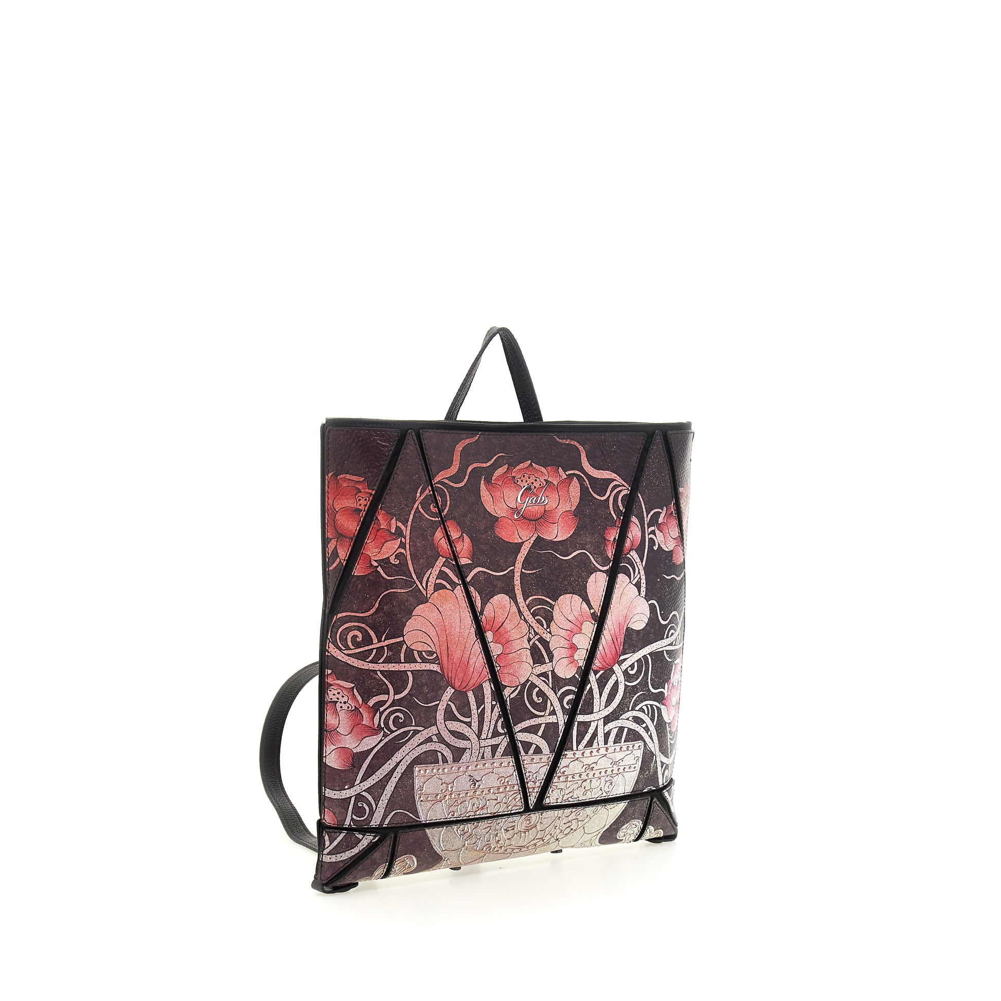 La linea Sendai di Gabs è la scelta perfetta per chi cerca un tocco di eleganza in più nella propria borsa. Grazie ai motivi geometrici presenti sui modelli, la trasformazione è resa ancora più semplice. Lo zaino Naoko grande è realizzato in pelle stampata. Elegante e funzionale, con ampio spazio per tutti i tuoi oggetti essenziali. • Chiusura principale con bottone a pressione e con cerniera e classico tirazip Gabs • Finitura accessori in canna di fucile • Interno Foderato • Tasca interna con chiusura a zip e due tasche porta oggetti • Cinghie zaino regolabili • Shopper pieghevole in tessuto • Fondino estraibile • Block notes • Made in Italy