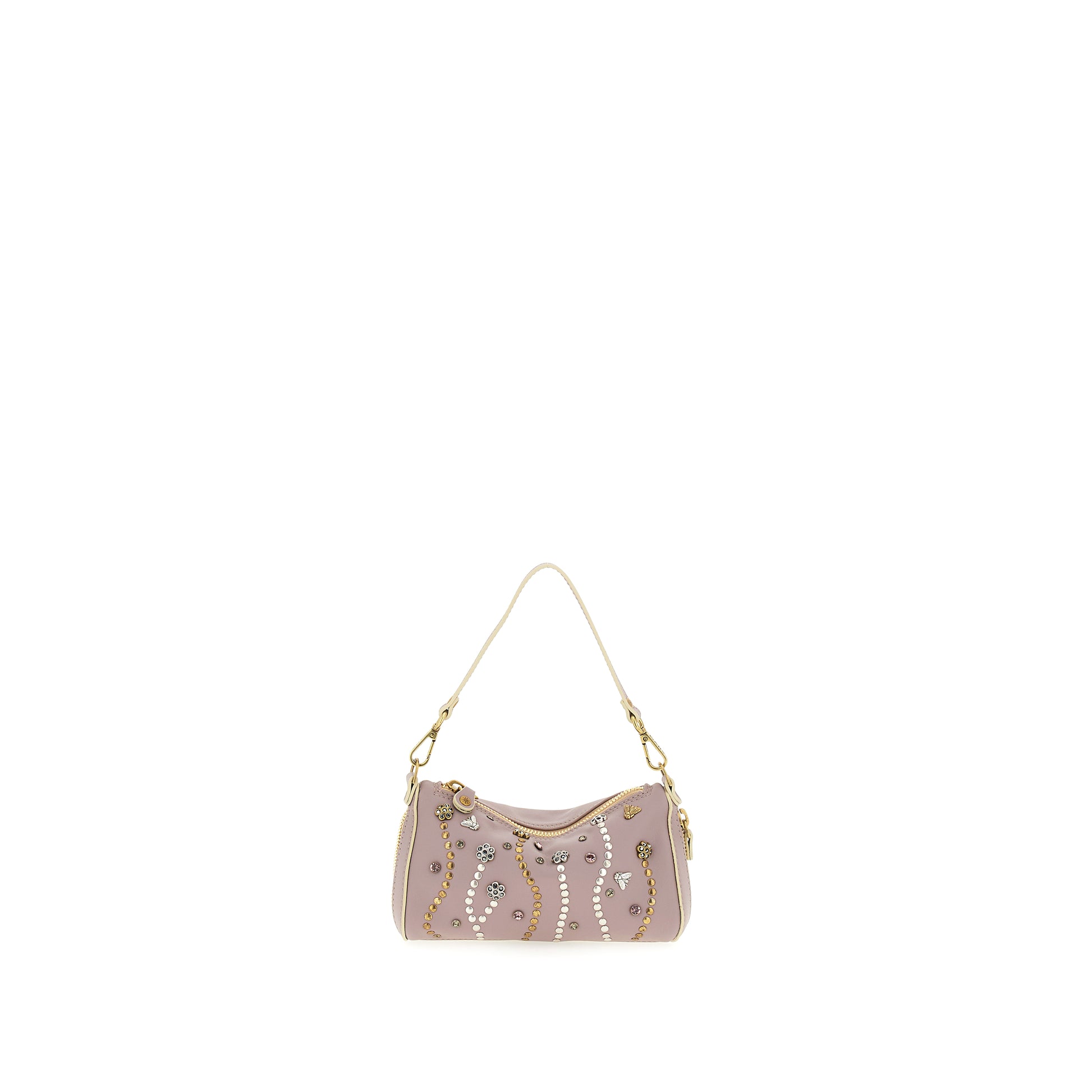 Monospalla PEPITA TAGLIA XS in pelle di vitello e tessuto con borchie e strass