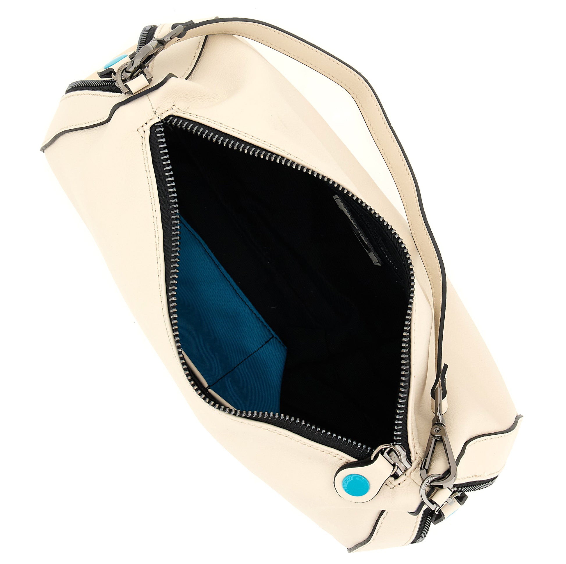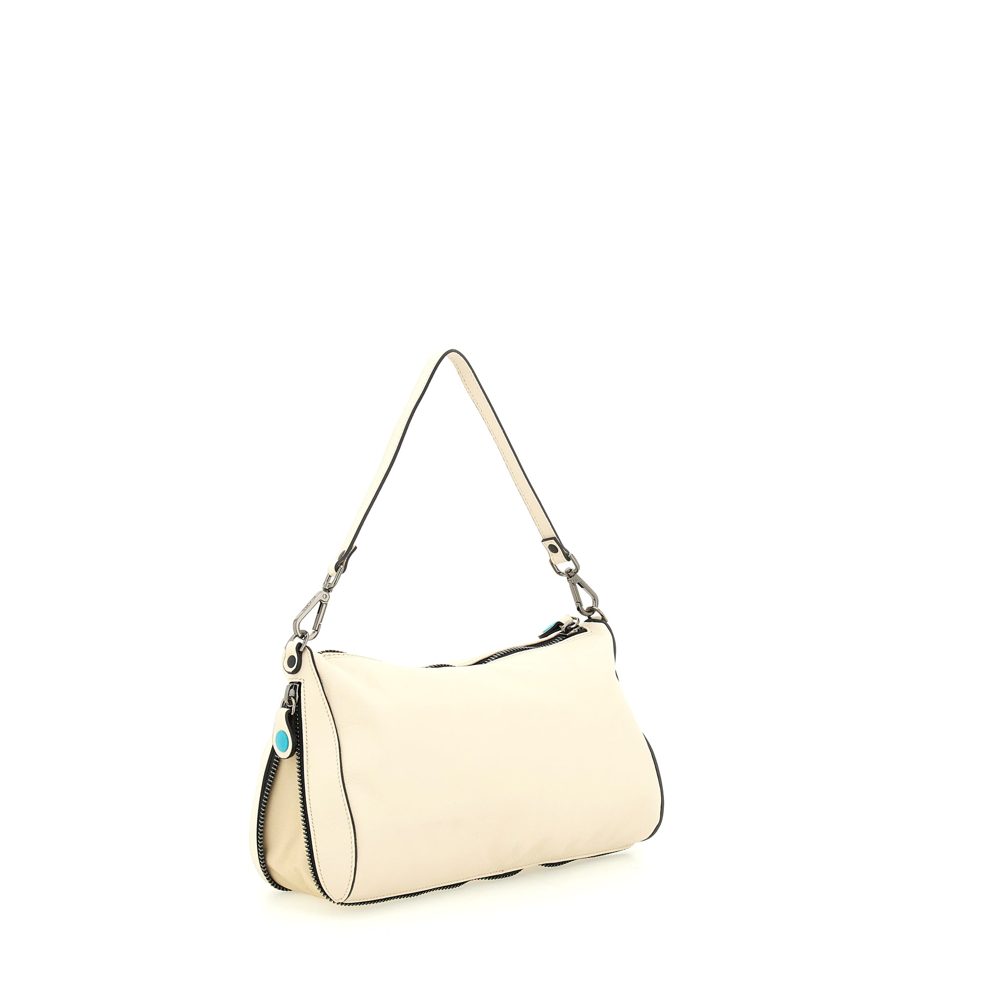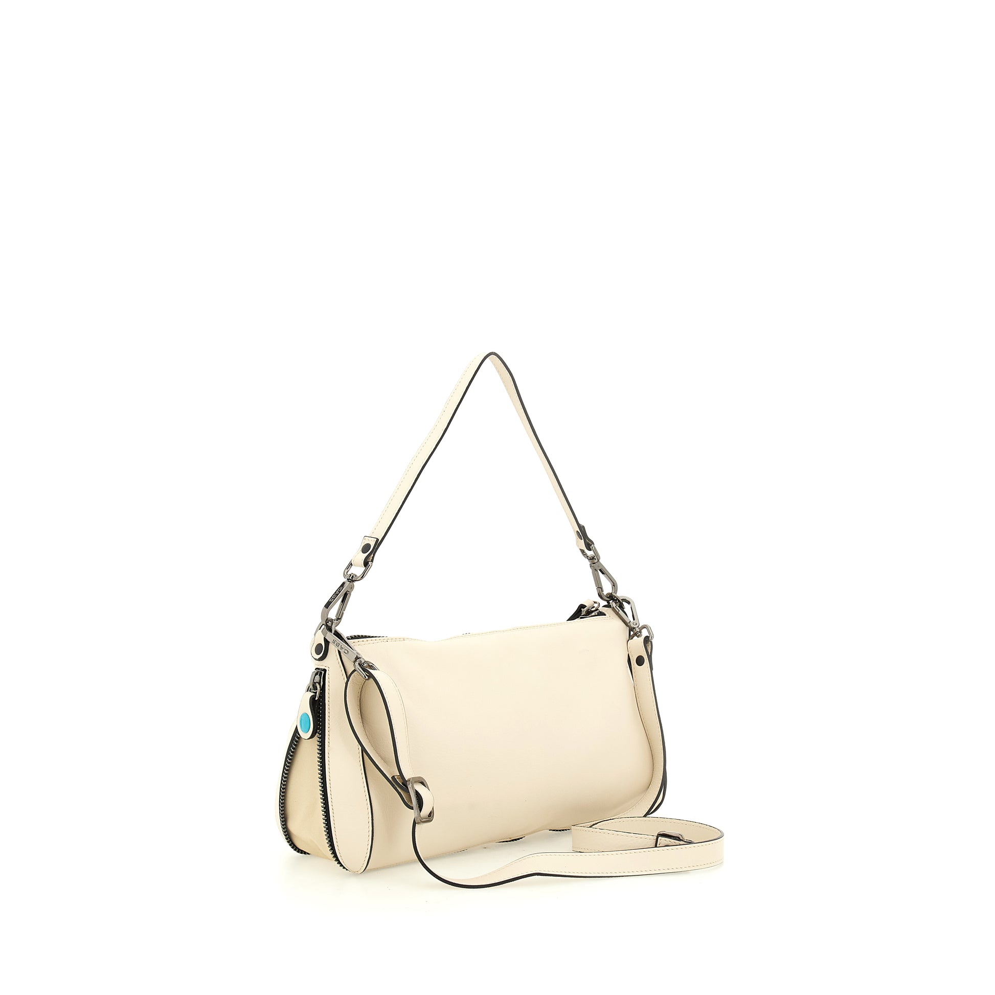 Borsa a spalla PEPITA in pelle di vitello martellata e vela.