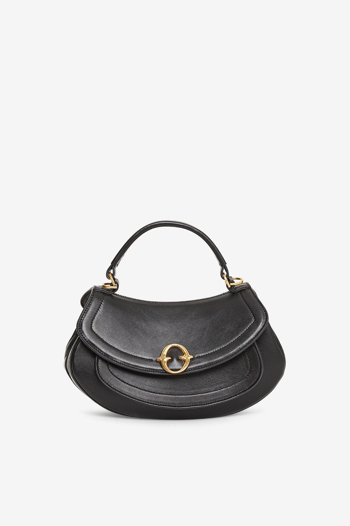 Belly bag mini in vera pelle con manico e fibbia in metallo.